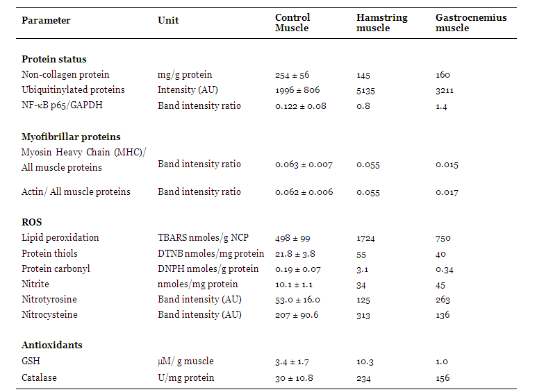 Muscle proteins Oxidative and nitrosative stress Antioxidants in muscles | ||||||