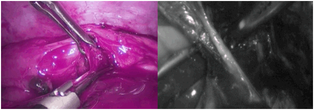 Patient 3: A 54-year-old female presented with complaints of severe progressive dysphagia, nausea and vomiting for last 3-4 months. Computed tomography (CT) scan and endoscopy with biopsy reveled T3N0 squamous cell carcinoma. The patient was planned for a Minimally Invasive Esophagectomy. The operation was carried out successfully with 25 lymph node resections and clear margins. The operative time was six and a half hours. The patient had an extended ICU stay of 21 days and a hospital stay of 30 days due to anastomotic leak and thoracic duct leakage which eventually resolved on NPO and total parenteral nutrition. The patient is doing fine at follow-up of seven months now. A still picture from videoscopic procedure showing division of left gastric pedicel (left) and esophageal mobilization (right) is shown in figure 4. | ||||||