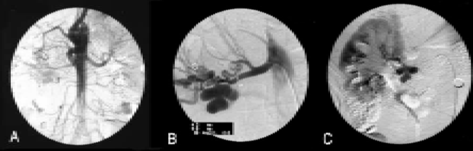 Digital subtraction angiography was performed confirming the 'Bunch of Grapes' appearance of renal artery, which ruled out feasibility of angioplasty due to tight stenoses (figure 3A, B, C). | ||||||