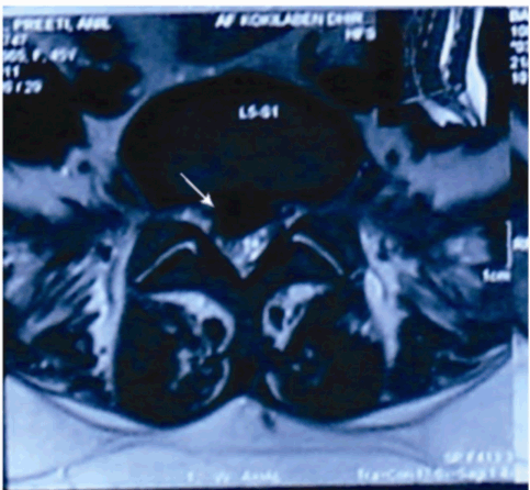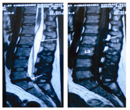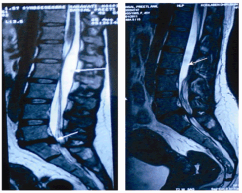 Case Report: A 41-year-old lady presented with acute onset low back pain with bilateral, radiating leg pain. MRI showed lumbar, intradural NE cyst with significant L5-S1 prolapse disc. The patient refused surgery and managed herself with intermittent analgesics for 12 months. However, with change in position of cyst from the posterior to the anterior aspect of the cauda, the patient had intractable leg pain with perineal pain and hypoaesthesia and urinary symptoms. Surgery was done to excise the cyst with L5-S1 microdiscectomy. Conclusion: NE cysts are rare, benign cysts of the central nervous system that have the capacity to expand by accumulating CSF like fluid, and require excision or decompression before any damage is caused by the pressure effect. Interesting in the case was to note the free floating nature of the cyst and the change in the symptoms of the patient with change in position of the cyst. | |