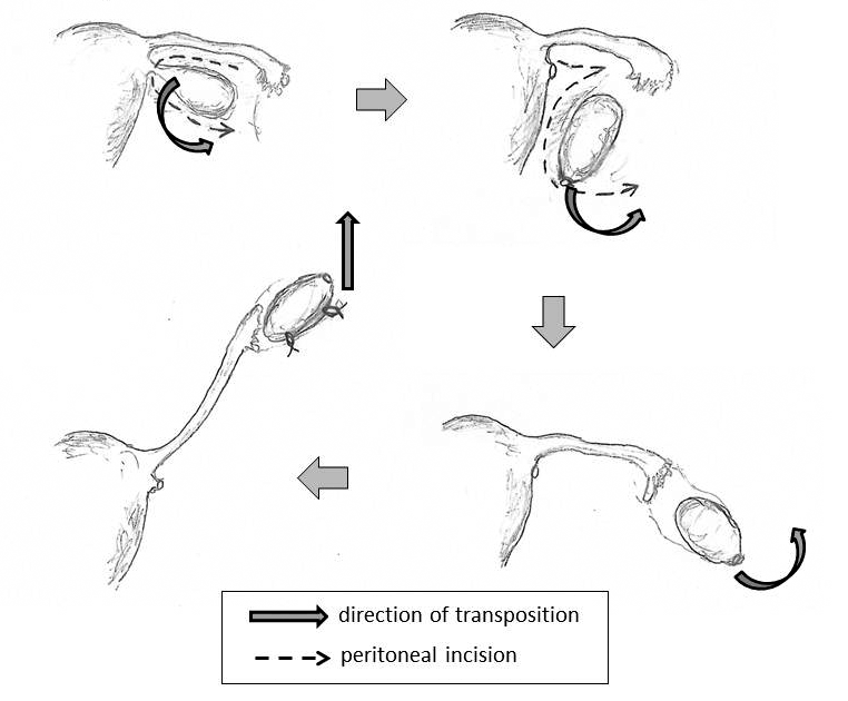 Laparoscopic ovarian transposition is an effective method to preserve ovarian function in cancer patient who undergos pelvic irradiation. However, in usual operative procedure, the patients lose an ability to conceive naturally.