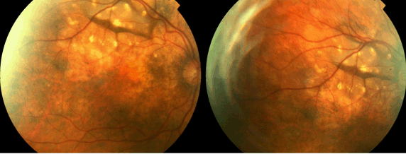 In male as in female patients, breast cancer cells may metastasize to the choroid and such metastases should be suspected whenever a patient with a past medical history of breast cancer presents with blurred vison. An appropriate ophthalmology exam with at least fundoscopy should be indicated. An awareness of the signs and symptoms is necessary for prompt recognition of these metastases in order to establish the appropriate therapeutic management and improve vision and quality of life. Treatment strategy is still based essentially on radiotherapy and should be considered individually depending on size, localization, presence of metastases to other organs and general condition of the patient. | ||||||