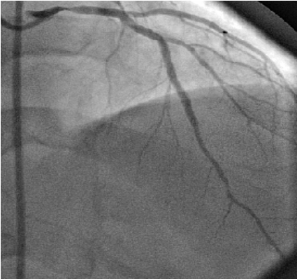 Although recent clinical experience indicates a high success rate, percutaneous coronary intervention (PCI) is still associated with serious complications which usually occur during or shortly after the procedure. With recent increase in utilization of advanced technology, such as intravascular ultrasound (IVUS) and optical coherence tomography (OCT), serious complications, such as significant left main coronary artery stenosis, can now be more effectively identified. Harper et al. reported two cases of subacute progression within months of left main stenosis following successful, uncomplicated left anterior descending (LAD) coronary PCI. [1] This rare complication of coronary intervention is procedure-induced coronary stenosis resulting from endothelial injury by the guide catheter and equipment. | ||||||