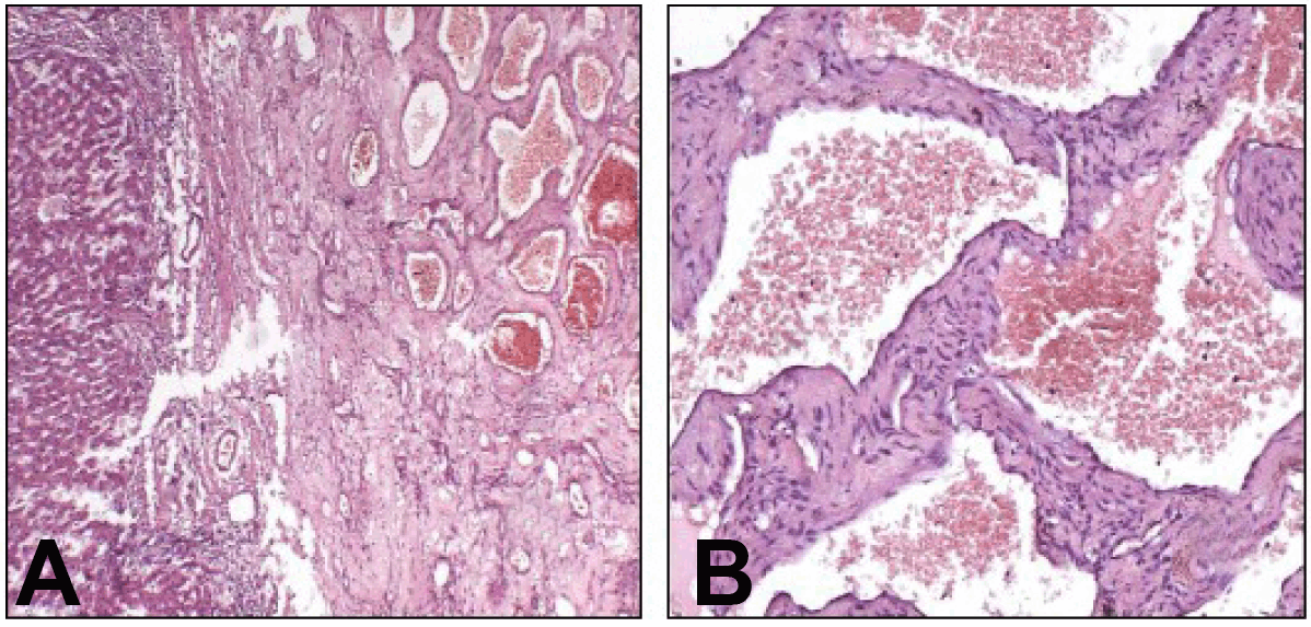 Along a period of 10 years, a 45-year-old male had been complaining of a dull aching pain stationary in course for eight years, and in the last two years, it became progressive preventing the patient from sleeping in supine position due to severe dyspnea. Also, bilateral edema of the lower limbs were noted. Abdominal examination revealed a non-tender firm intra-abdominal mass in the right hypochondrium, lumbar and epigastric regions moving with respiration. A doubtful lateral mobility was present. An ultrasound study of the abdomen showed a large well encapsulated mass in the caudate lobe of liver with caudal exophytic expansion to segment VI. Triphasic computed tomography (CT) scan demonstrated a large mass in the caudate lobe with a typical CT enhancement pattern of hemangioma. (Figure 1) The patient had excellent liver function with; serum albumin 4 g/dL, prothrombin 90%, serum bilirubin 0.8 and normal complete blood picture. With negative viral markers and normal alpha fetoprotein. Upper gastrointestinal endoscopy was free. Surgical exploration of the patient was done through a Mercedes-Benz incision which reveald huge hemangioma exophytic from the caudate lobe of the liver (Figure 2) the liver itself was healthy and of good size with evidence of small hemangiomas in the left lobe but no nodules, ascites nor lymph nodes were present. Porta hepatis dissection and transfection ligation of the feeding vessels to the caudate lobe from the portal vein and hepatic artery was done firstly, and then mobilization of the right lobe and transfixion ligation of the posterior hepatic veins which were found large in size. Then an approach of the exophytic part of the hemangioma (antecaval part and caudate process had been started through dissection along the plane between its capsule and liver tissue on the surface of the liver using harmonic scalpel after division of the cystic duct and artery. This helped to attain a bloodless field and easy dissection of that part of the tumor till its complete separation and extraction from the caudate lobe proper. The remaning part of the caudate lobe hemangioma (caudate lobe proper) appeared clearly showing compression of the inferior vena cava (IVC) and extending laterally and caudally behind the porta hepatis with the gastrohepatic ligament obviously stretched in between the hemangima and segment II, III. (Figure 3) Approach to this part was done from both right and left sides, after division of the gastrohepatic omentum and the ligamentous attachments from the caudate lobe to the left side of IVC, the tumor was completely separated from the IVC lateraly and from the middle and left hepatic veins superiorly allowing reasonable rotaion and delivery of the tumor through the left side. (Figure 4) Transcystic cholangiogram was done and revealed patent sound biliray system. This bloodless procedure was done without any total or partial vascular isolation or occlusion and without blood transfusion. The time of surgery was 4 hours and 20 minutes. The abdomen closed with tube drain. The patient passed a smooth postoperative period and was discharged 10 days after surgery. Histopathological examination of the tumor revealed cavernous hemangioma. (Figure 5) Three weeks later spiral CT scan was done which revealed complete removal of the tumor. (Figure 6) | ||||||