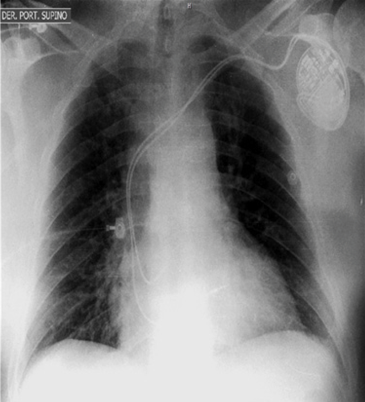 Case Report: A 61-year-old male with background of ischemic heart disease, hypertension, diabetes mellitus, obstructive sleep apnea and dyslipidemia, was referred to our institution after four months of recurrent syncopal episodes. A bradycardia-tachycardia syndrome was diagnosed and decided to proceed with permanent pacemaker implantation. Through a cutaneous incision in the left deltopectoral groove, we dissected the tissue planes until the left cephalic vein became visible. Fluoroscopy in anterior-posterior projection showed clear supraclavicular course of the cephalic vein. This access was abandoned by removing both wires and ligating the proximal end of the cephalic vein. Through a fluoroscopy/venogram guided axillary puncture using the modified Seldinger technique and the retained wire technique, double central vein access was secured, allowing the passage of right atrial and ventricular leads. A dual chamber pacemaker was implanted. Conclusion: Although the supraclavicular course of the cephalic vein is a rare anatomical variant, it is important to recognize its presence as it may lead to potential complications related to lead dysfunction, erosion or collateral vascular damage if used as an access for permanent lead placement. Alternative central vein access is strongly recommended in such cases. | |
