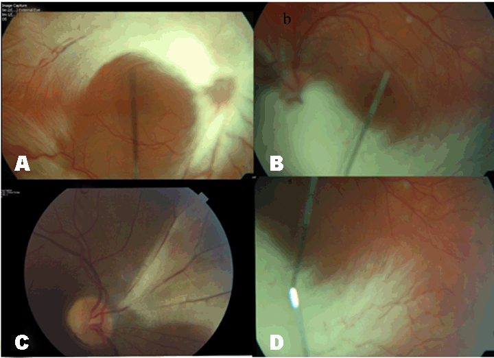 Myelinated retinal nerve fibres which occur in 1% of the population are often localized in a segment of the retina and have no effect on vision. [1] We report a rare case of familial myelinated nerve fibres with vitreoretinal complications. | ||||||