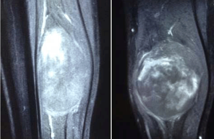 The most common forms of schwannomas are benign. They originate from the sheath of Schwann surrounding peripheral nerve fibers and malignant transformation is uncommon. The patients may have a history of neurofibromatosis type I (NF-1) or tumors may arise spontaneously [1]. Benign peripheral nerve sheath tumor appears as an asymptomatic, slowly growing lesion, while malign lesion is aggressive. Literature studies showed that malignant peripheral nerve sheath tumors are aggressive, presenting as a rapidly growing and painful lump. These tumors are associated with poor prognosis unless wide excision of the tumor is undertaken before local invasion or distant metastasis can occur [2]. Some authors advocated that the operation undertaken, if possible, should be the amputation. Alternatively, where amputation is not possible the alternative must be the largest and most radical excision possible [3]. According to Musculoskeletal Tumor Society, majority of the patients had Stage II (high grade but not metastasized) or Stage III (plus metastasis) tumors. The aim of this paper is to report a rare case of a sizeable low grade malignant schwannoma of the posterior tibial nerve and to underline the methods of treatment. | ||||||