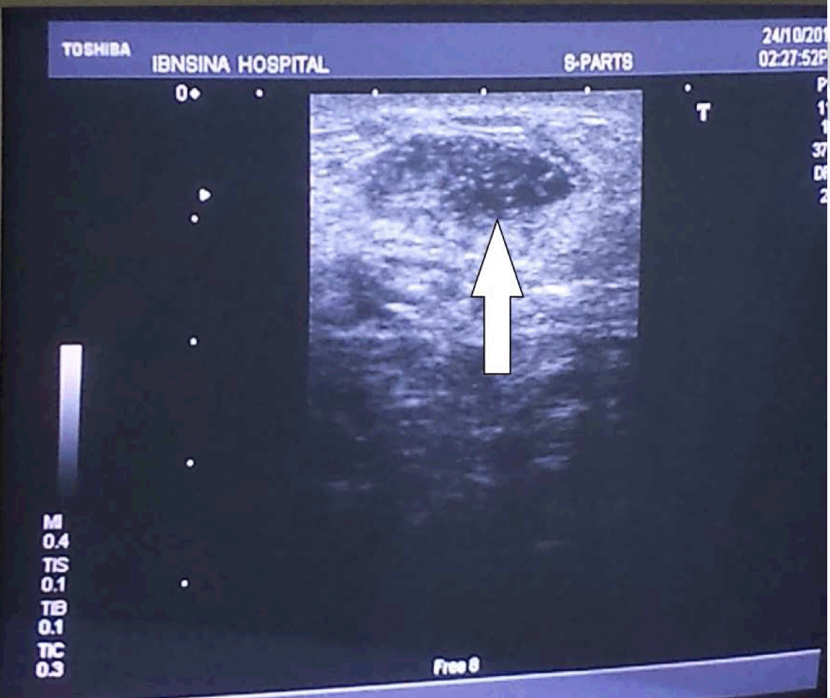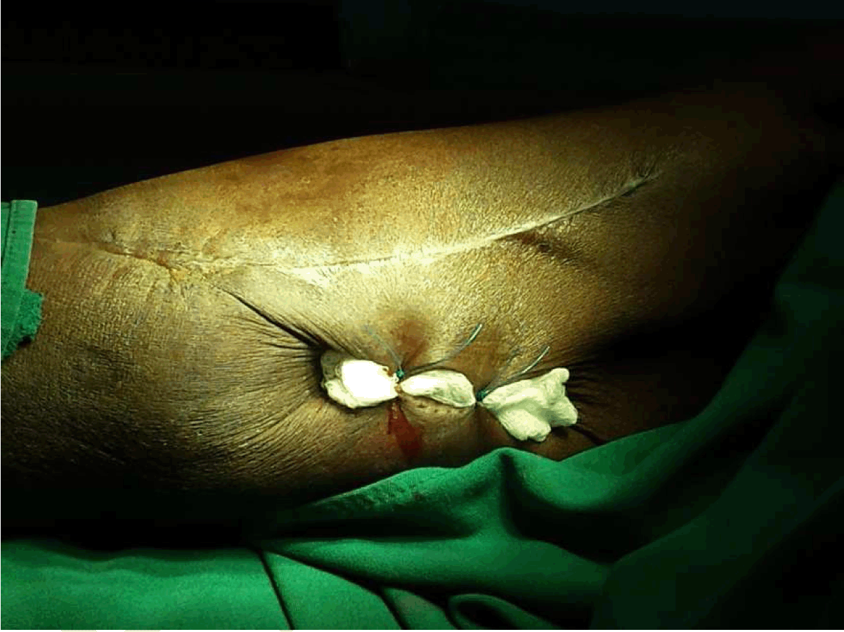 Lymphoceles commonly arise as a complication of surgeries, where the normal lymphatic vessels are dissected in the procedure or as a consequence following trauma. They regularly appear following major pelvic surgeries, gynecological oncological surgeries and renal transplantation. Other surgeries may also witness lymphocele formation, as open abdominal aortic aneurysm repair. Clinically, lymphoceles, hematomas and seromas may have similar presentations. Aspiration and cytology helps in confirming or excluding a diagnosis. Lymphoscintigraphy (radiological) helps visualize the course of the lymphatic vessels. Regarding the management of postoperative lymphoceles by sclerotherapy, Mahrer et al. conducted a study with 38 patients, the success of sclerotherapy treatment was observed in 33 patients. The number of sclerotherapy sessions ranged from 1–14, with an average of four sessions. They stated that the patients with a lower amount of fluid aspirated in the initial drainage (206 mL) had a higher chance of success, while those with a higher initial aspirated volume (1,708 mL) were the group that failed to respond to treatment. They concluded that the lymphocele cavity size is directly related to the success of sclerotherapy treatment [4]. In contrast to the presentation of this case report, the amount of fluid aspirated was 130 mL and the patient has received four sclerotherapeutic sessions with recurrences of the same amount of fluid in the cavity of the lymphocele in all sessions. Resolution of the lymphocele only occurred after application of the external pressure. In another study, treatment of a recurrent postoperative lymphocele was performed by drainage and alcohol ablation without complications, in one out of 13 patients. The rest were successfully treated via drainage and sclerosis [5]. Porcellini et al. conducted a study which evaluated the management of postoperative lymphoceles following lower limb arterial reconstructive surgery, in a conservative outpatient fashion. The patients were managed by ambulation limitation, elevation of the limbs and pressure dressings without serial aspirations. All the lymphoceles have resolved in an average period of 21 days [6]. In a study done by Weinberger et al., they discussed the management of postoperative lymphoceles after gynecological surgeries. They stated that the methods prevailing for management tend to be the less invasive ones like sclerotherapy and catheter drainage, followed by surgery (laparotomy vs laparoscopy) for recurring lymphoceles [7]. The use of isosulfan blue dye was also described in identifying and ligating a forearm lymphocele without prior drainage or sclerotherapy, which appeared as a complication of an interosseous artery pseudoaneurysm repair [8]. Fabrizio Sansone et al. described a technique in which they sutured pledgets over the skin on the groin to apply constant pressure to groin lymphoceles that occurred as a complication of major cardiovascular and vascular surgery. Their study included 10 patients and the length of time required for resolution of the lymphocele spanned from 10 to 20 days [9] . The technique described here is almost similar to what we have done, focusing mainly on pressure applied externally to avoid filling of the lymphocele cavity. | ||||||