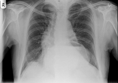 A 73-year-old male presented to the emergency department with a one-day history of severe epigastric pain with vomiting progressing to dry retching. He admitted to a long history of esophageal reflux symptoms treated with oral omeprazole. His initial examination revealed a tachycardia and a swollen, tender epigastrium but no other signs of note. A nasogastric tube was passed with difficulty, he was made nil by mouth and treated with intravenous crystalloids. Laboratory blood results were unremarkable including normal amylase and liver function tests. A chest X-ray showed a large retrocardiac viscus reported as a large hiatus hernia while his abdominal film demonstrated a paucity of bowel gas (Figure 1). An abdominal and thoracic computed tomography (CT) scan revealed a moderate hiatus hernia without obvious perforation and the possible appearance of a rotational component of the stomach with dilatation to the pylorus and no fluid beyond this point. A subsequent upper gastrointestinal contrast study clearly demonstrated an 'upside-down stomach' sign and established the diagnosis of an obstructing organoaxial volvulus secondary to a paraesophageal hiatus hernia (Figure 2) [1]. On transfer to our facility the patient went on to have definitive laparoscopic gastropexy surgery involving reduction of the volvulus, excision of the hernia sac, re-approximation of the diaphragmatic crura then placement of four sutures anchoring the greater curvature of the stomach to the abdominal wall. He has had no recurrence of the volvulus and was symptom free when followed-up in clinic for six months. | ||||||