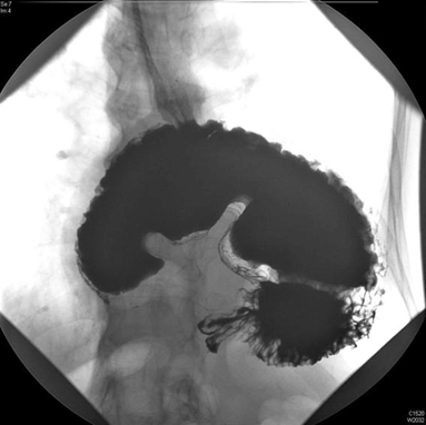Acute gastric volvulus is a rare surgical emergency with high rates of non-operative mortality. Prompt diagnosis and urgent surgery is crucial to avoid life-threatening complications associated with this condition. A purely clinical diagnosis is challenging but the condition should be suspected in a patient who presents with abdominal pain and distension, unproductive vomiting and a difficult to place nasogastric tube. Although a computed tomography scan may prove useful our case report clearly demonstrates the power of upper gastrointestinal contrast studies in establishing a definitive diagnosis. | ||||||