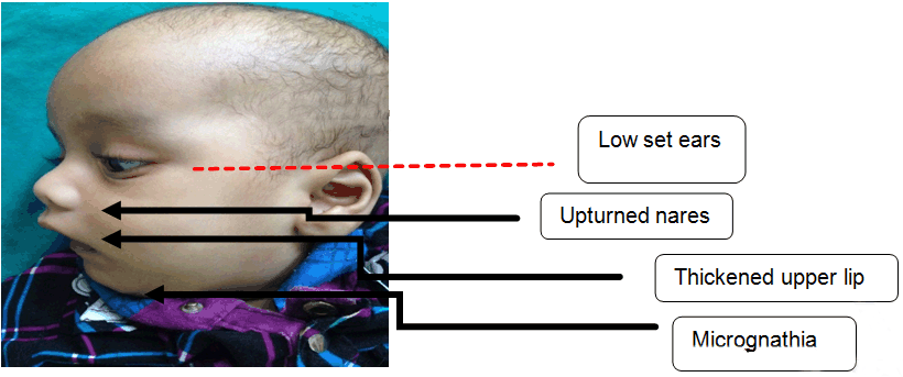 Miller–Dieker syndrome (MDS) results from a contiguous gene deletion involving 17p13.3 locus [1] . L1S1 gene is required for neurogenesis and neuronal migration and is located at 17p3. Miller–Dieker syndrome is usually associated with complete absence of this gene, which leads to classical Type I lissencephaly. Defect in the neuronal migration during embryonic development results in lissencephaly [2]. Apart from typical abnormal facies, MDS is also associated with intellectual disability, developmental delay, hypotonia and seizure disorder by first year of life. | ||||||