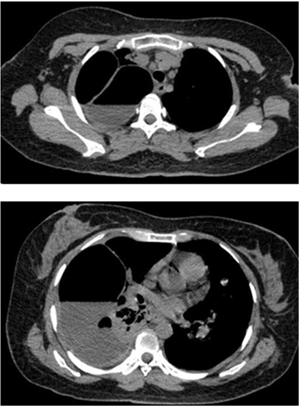 Adamantinoma is one of the rarest low-grade malignant bone tumors, representing around 0.4% of them [1]. It was described initially by Fisher in 1913 and occurs most commonly between 10 and 50 years of age with slight male predominance. It was commonly found in the centerpart of long bone. However, some cases happened in other parts of the bone [2]. Around 90% of the cases there were reported previously was found in long tubular bones and 80% of it was found in the tibial mid shaft. Other long bones not uncommonly affected are the humerus, ulna, femur, fibula and radius. Early on it is confined to bone, furthermore there may be an extension inwards to the medullary canal or outwards beyond the periosteum. Pain is the most common clinical manifestation and local swelling is the common second clinical sign to appear. Distant metastases have been described to occur many years after the presentation of the primary lesion [2] [3] The incidence of recurrence is approximately 30% and those of metastases ranges between 10% and 20% [4]. We presented a case of adamantinoma of tibia with pneumothorax and suspected pulmonary metastasis with recurrence of the primary tumor after excision six years prior to admission. | ||||||