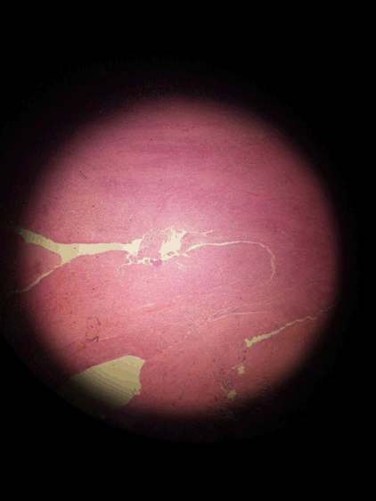 A 19-year-old male presented with a chronic nodule in the scalp for one year duration with intermittent discharge. There was no history of trauma. Local examination showed a single mobile nodule, 2x2 cm in size in the left parieto-occipital region with a punctum in center. Complete blood count, erythrocyte sedimentation rate and skull X-ray were normal. Complete excision of the nodule was performed under local anesthesia. Primary closure was done after irrigating the wound with diluted povidone. Histopathological examinations showed skin and subcutaneous tissue of scalp containing a sinus tract in the center infiltrated by mixed inflammatory cells, associated with foreign body giant cell reaction which contained hair particles. The wound showed clear margins after three months of the operation (Figure 1). | ||||||