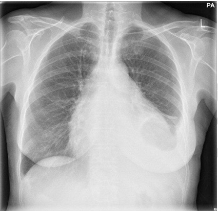 A 66-year-old female presented with neuropathic pains across her right leg for two weeks. The patient had first noticed some paraesthesia on both lower limbs, which she described to feel like "pins and needles", with a patchy distribution from her hips to her ankles. As the days progressed, the patient described excruciating shooting pains in all muscle groups in her right leg, to the point that on presentation she was unable to weight bear, and had to be wheeled into the department. Her documented past medical history was mild asthma of late onset for a decade, and recently diagnosed mild gastritis and osteoarthritis. The patient was on montelukast 10 mg once daily and lansoprazole 30 mg once daily. On further questioning, she admitted to having had recurrent chest infections and asthma exacerbations over the last few months prior to her current presentation, requiring steroids and antibiotics every 2–3 weeks. For this purpose, she was under investigation by the respiratory team. A recent computed tomography scan of thorax revealed some post-infective scarring, with nothing else of note. She also admitted to mild weight loss and drenching sweats. She was not diabetic, or anemic, and had no thyroid disease. She denied eye, skin, bowel, bladder, sinus or joint problems. She denied cigarette smoking or alcohol consumption, and she had no allergies to any mediations. On examination she was tachycardic, with a heart rate of 140 bpm, irregularly irregular, she was hypoxic and needed two liters of oxygen via nasal cannula to keep her oxygen saturations more than 94%. She was tachypneic with a respiratory rate of 22 beats per minute. She was apyrexial, and her blood pressure was stable. On examination of her cardiovascular system, she had bilateral ankle pitting edema, her JVP was raised and her apex beat was displaced laterally. On auscultation of the heart there were no murmurs. On examination of her respiratory system, she was unable to talk in full sentences. On auscultation, she had bibasal reduced breathing sounds with dullness on percussion, but no wheeze. Her peak expiratory flow was 150, which was 75% of her normal. Abdominal examination was unremarkable. She had no rashes, lymphadenopathy, or active synovitis. Her GCS was 15/15, and pupils were equal and reactive to light and accommodation. Cranial nerve examination revealed no abnormalities, as did peripheral neurology examination of the upper limbs. Examination of the lower limbs was limited due to pain. Power was 5/5 on the left leg, and equally reduced to 3/5 in all muscle groups, due to pain, on the right. Reflexes were globally reduced, and patient's pain was intolerable when reflexes were tested. Vibration was normal, but proprioception was not formally assessed, as the patient had excruciating pains to even slight movement of her lower limb joints. The patient had obvious signs of small fiber neuropathy on the right lower limb. Urine dipstick revealed proteinuria and hematuria. The patient was adequately resuscitated with oxygen therapy and intravenous fluids, and analgesia was escalated to intravenous morphine, but with no success, as pain relief was not achieved. Routine investigations were sent. Thyroid function tests, immunoglobulin levels, complement levels, and creatine kinase were all normal. All electrolytes were within normal limits. Autoantibody screen, including ANCA, ANA and ENA, was negative. Hematinics, including vitamin B12 were normal. Liver and renal function were normal, as were clotting times. The only abnormal results from the bloods tested were her full blood count, her CRP and her serum IgE levels. The patient was anemic with hemoglobin of 10.8 g/dl (normocytic, normochromic), and her white cell count was raised to 25.2x109/L, with marked eosinophilia of 17.6 (x109/L). Her platelets were raised at 507x109/L. Her CRP was 120 (mg/L) (normal range 0-4 mg/L) and her IgE levels were 148 (U/L) (normal range <75U/L). Arterial blood gas was obtained, which revealed mild hypoxia. Chest X-ray revealed a small left sided pleural effusion (Figure 1). A 12-lead ECG showed atrial fibrillation with fast ventricular response. Urgent echocardiogram showed moderate left ventricular hypertrophy, with pericardial effusion, but no echocardiographic signs of cardiac tamponade. A diagnosis of systemic eosinophilic granulomatosis polyarteritis was made taking into account clinical and biochemical findings. The role of montelukast was questioned in the pathophysiology of the disease. Montelukast was discontinued, amitriptyline and prednisolone were started at 25 mg and 40 mg daily respectively, and patient was put on bisoprolol and warfarin for her atrial fibrillation. DEXA scan was requested and alendronic acid was started prophylactically. The patient's symptoms of paraesthesia and leg pains completely resolved within the next days of this admission, and her eosinophils fell to 1.6x109/L within the first week of treatment. As such, nerve conduction studies and quantiferon test were both canceled, and further hematological advice was not sought. Patient made partial recovery within three days, with only a patch of allodynia on her right lateral malleolus, and full recovery within the next six weeks, with no further episodes of pain or further exacerbations of her asthma. On further follow-up post-montelukast cessation and steroid withdraw, patient remained well and asymptomatic, with repeated bloods with normal blood count and eosinophilic values, having not required further treatment and in particular immunosuppression, making montelukast the main differential diagnosis for the patient's life threatening presentation. | ||||||