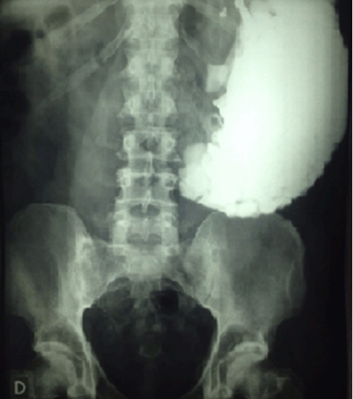 Lithobezoars (stones) are quite rare, with very few cases described, as are metal bezoars and plastic bezoars [1][2] [4][5]. Most of the published data consist of case reports of colonic lithobezoars in children and adults [4] [6]. To the best of the our knowledge, there is only another article detailing a gastric lithobezoar which presented as dyspepsia, however, with much less stones compared to the current case [7]. Risk factors for bezoars in general include previous gastric surgery, conditions of reduced acidity or delayed motility, poor mastication, mental retardation, psychiatric disorders, and pica, i.e., an abnormal eating behavior characterized by ingestion of nonnutritive substances and classified according to the consumed matter: trichophagia (hair), acuphagia (sharp objects), lithophagia, etc. [3] [6][8]. In this case, the patient was schizophrenic and had previous metal pica. Usually, there are no symptoms until the bezoar reaches a substantial size but many patients remain oligosymptomatic. Gastric bezoars ordinarily cause dyspepsia (80%), distention, nausea, vomiting, hyporexia and halitosis. Complications as ulcers and perforation can occur [3] [5]. On physical examination, sometimes, it is possible to palpate the organ filled with the stones, with a characteristic "crunch sign", which usually applies to the colon [4] [9][10]. In the present case, given the palpation of the gastric bezoars with resulting singular sound, we strongly believe the concept also fits the stomach. Hence, we would like to propose the "gastric crunch sign". Radiographical diagnosis is especially valuable in litho bezoars, showing typically conglomerated radiopaque images within the organ. This unique appearance, "corn on the cob" sign, is considered pathognomonic. In this particular type of bezoar there is no need for barium studies or other image methods [4] [9] [10] . Upper endoscopy can be utilized in the diagnostic approach [3]. Nevertheless, the authors did not perform it given the large amount of foreign material in the stomach, making air insufflation particularly challenging, with risk of perforation. Gastrointestinal bezoars can be effectively treated by endoscopy or surgery. Endoscopic extraction is the choice in little or fragmentable bezoars, utilizing snares, rat-tooths, Dormia baskets and lithotripsy methods [1] [3][5]. Nevertheless, endoscopic management carries the risk of distal migration of fragments and iatrogenic injuries due to the manifold introductions/retrievals of the endoscope [3]. Open surgery is indicated in cases of failure of conservative attempts, large dimension bezoars composed of unfragmentable matter, complications such as intestinal obstruction, perforation and hemorrhage. The preferred approach is longitudinal gastrotomy in the anterior wall with removal of the bezoars followed by gastrorrhaphy [3]. We are successfully resorted to surgery and the patient had a favorable outcome. | ||||||