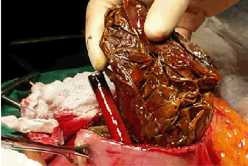 A bezoar is a conglomeration of partially digested or undigestible foreign material in the gastrointestinal tract [1]. The term derives from Arabic "bazahr" or "badzehr", which means antidote, due to the fact that until the 19th century, bezoars obtained from sacrificed animals were utilized to cure several illnesses [2]. The earliest record of human trichobezoar was credited to Baudamant in 1779 and the first preoperative diagnosis to Stelzner in 1896 [3]. Bezoars are classified according to their composition. The most common are phytobezoars (vegetable matter) and trichobezoars (hair). Other less frequent are lactobezoars (concentrated milk formulas) and inorganic material bezoars [1] [3][4]. Clinical manifestations depend on its location, ranging from no symptoms to acute abdominal syndromes. The stomach is the most frequently affected organ [1] [3]. We report a unique case of a giant gastric bezoar in an adult patient. | ||||||
