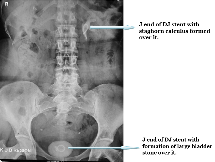 In a nutshell, we conclude that although double J stent is an essential tool in quiver of an urologist, their use should be done with caution, patient should be well informed regarding their benefit and harm, A stent register should be maintained to check follow up of such patient, and if there is need of prolong stenting it should be changed after every 12 weeks. | ||||||