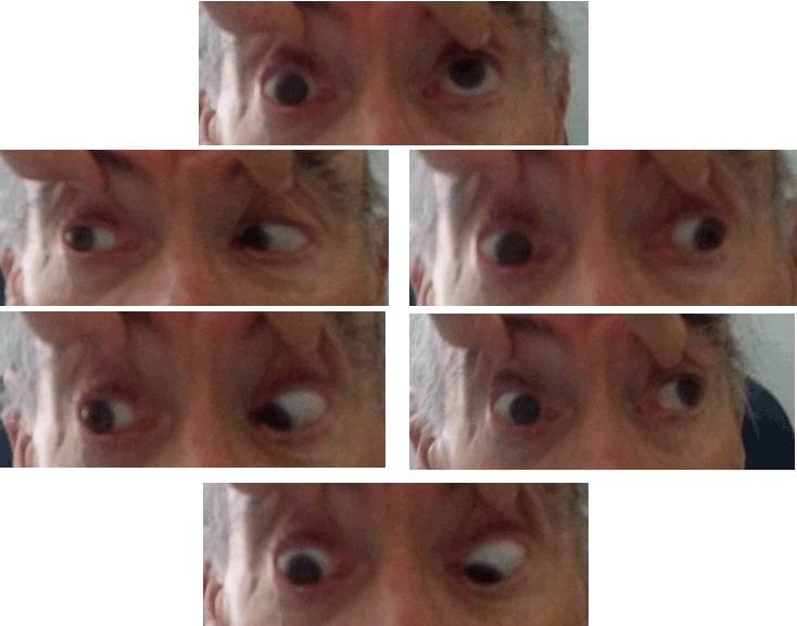 We present the clinical case of a 72-year-old Caucasian male with ophthalmological history of right eye (oculus dexter) amblyopia caused by an untreated esotropia. No relevant medical history was known, with irregular surveillance by his general doctor and no regular medication. The patient presented with holocranial headache, right eye ptosis and temporary diplopia seven days prior to emergency room observation. He denied ocular pain, fever, previous trauma or other systemic or neurologic symptoms. Ophthalmic exam disclosed right eye best corrected visual acuity of the right eye of 20/200 and of the left eye of 20/25. A right ptosis (Figure 1) with attainment of the visual axis, without any inflammatory signs. The pupils were symmetric with a present but sluggish right direct reflex, and a doubtful Marcus Gunn pupil. The patient was orthotropic (Figure 1). The ocular motility examination showed a limitation in adduction, elevation and depression of the right eye (Figure 2). No diplopia was present during observation neither other neurological defects. The slit lamp examination revealed a cataract and funduscopic examination was unremarkable. Computed tomography (CT) scan of the brain and orbits did not reveal acute changes and a analytical study revealed raised inflammatory parameters with neutrophilic leukocytosis (2000, 92.9) and protein chain reaction PCR slightly elevated (4.69). CT angiography that did not reveal aneurysmatic dilations. Brain magnetic resonance imaging (MRI) scan showed countless small foci of enhancement leptomeningeals with cerebellar predominance and additional cerebral foci and in the the internal acoustic canal on T1 acquisition. These findings suggest a possible meningeal carcinomatosis. Lumbar puncture revealed atypical cells (69 mm3), cerebrospinal fluid (CSF) cytology showed neoplastic cells suggesting infiltration by carcinoma (CK 18+). Cerebrospinal fluid serology was negative for Cryptococcus, Lyme disease and syphilis. Cerebrospinal fluid bacteriology was negative. The patient underwent investigation for primary tumor site with CT scan of the neck, chest, abdomen and pelvis. The examination showed multiple lymph nodes on level III and IV referred mainly because of their number and size, the larger one with approximately 21x8.5 mm, and a mass with starting point on the left lateral wall of the bladder, with calcifications, measuring approximately 4x2 cm. The patient was submitted to a flexible cystoscopy that showed a sessil lesion with 3 cm and with probable invasion of the meatus; for a best description a transurethral resection (TUR) of the bladder was proposed. Once made, the histology of the biopsies of TUR revealed fragments of a infiltrative urothelial carcinoma of high grade. The patient started treatment with corticosteroids and methotrexate. The final diagnosis is a palsy of the oculomotor nerve by meningeal carcinomatosis in the context of urothelial carcinoma. The patient was hospitalized in the oncology department and started a systemic treatment, unfortunately with a poor prognosis. | ||||||