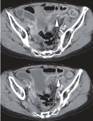 Ingestion of foreign bodies is a common clinical problem encountered in emergency departments. Meat boluses are the most common foreign bodies ingested in Western countries, while fish bones are the most common in Oriental countries where unfilleted fish is a culinary delicacy [1][2]. Although most fish bones pass through the gastrointestinal tract without complications, patients who accidentally ingest a fish bone are occasionally asymptomatic after ingestion initially, but may at a later date present remotely with serious complications such as perforation, obstruction, and abscess formation in the gastrointestinal tract. In fact, fish bones are the most common objects ingested and the most common foreign body to perforate the gastrointestinal tract [3]. Fish bones can perforate all segments of the alimentary tract. However, perforation tends to occur in areas of acute angulation such as the rectosigmoid and ileocecal junctions [4]. Early laparoscopic or surgical removal of the fish bone and abdominal lavage is recommended [5]. Eventually, as with our patient, determining the perforation site on laparotomy is difficult. Careful observation and administration of antibiotics are absolutely required for the treatment of intestinal perforation by fish bone. Diagnosis of foreign body perforation of the gastrointestinal tract can be challenging and is rarely correctly diagnosed preoperatively. Radiography is unreliable in the diagnosis of fish bone perforation. Computed tomography (CT) scan has been helpful in the detection of nonmetallic foreign body perforation. Fish bone perforation typically appears as a linear calcified lesion surrounded by an inflamed area on CT scan [6]. Evidence of pneumoperitoneum is only seen in approximately 30% of patients with intestinal perforation caused by fish bone ingestion [1]. Computed tomography scan sensitivity for detection of fish bone peritonitis is known to be relatively high (71–100%). Since the main reason for missed diagnosis is the observer’s lack of awareness, a high degree of clinical suspicion should be maintained in order to make a correct diagnosis. | ||||||