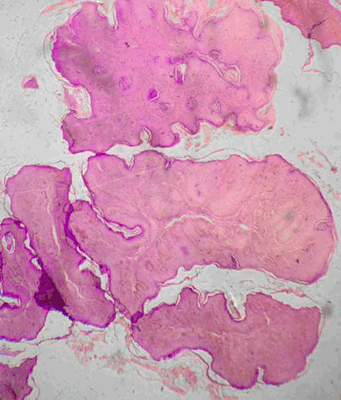 Figure 7: Photomicrograph showing multiple squamous papillae (H&E stain, x400).