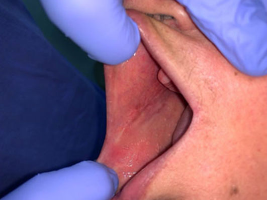 The patient is undergoing clinical follow-up for one year with no changes indicative of recurrence and with a satisfactory healing aspect (Figure 5).