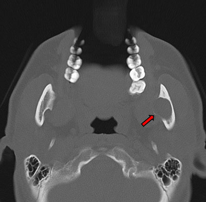 To the best of our knowledge, 9 cases of epidermoid cysts in the mandible have been reported in the English literature, including the present case [4],[5],[6],[7],[8],[9],[10]. Among 9 cases, 4 cases were located in the mandibular body alone, 3 cases were located in the mandibular ramus alone, including our present case, and 2 cases were located from the mandibular body to the ramus. Among these cases, ours was the only case in which the lesion was only found in the mandibular ramus, above the mandibular foramen, and was not associated with the teeth. In general, most cysts in the body of the mandible contain impacted teeth or have a history of trauma or surgery, suggesting the possibility of odontogenic factors or acquired epithelial migration. Although pericoronitis was present in this case, there was complete separation between the lesion and wisdom tooth. In addition, there have been reports of cysts that developed in the body of the mandible due to inflammation or trauma, or that were thought to have developed due to congenital migration of the ectoderm. However, the anatomical morphology and position of the inner mandibular ramus precludes the possibility of isolated development due to inflammation or trauma. Moreover, the age of the patient and the fact that there was a single layer of bone coverage suggest that the ectoderm was unlikely to have been acquired. In general, the mandible differs from other long bones in that it develops through a combination of endochondral and intramembranous ossification [11]. Considering the lack of acquired factors and the relatively rare site and asymptomatic presentation in our case, we cannot completely exclude the possibility that the malformation was caused by congenital slow development. The pathogenesis of this disease is still unclear, and further basic research is needed to clarify the mechanism.