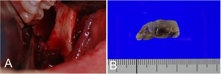 The most common treatment for epidermoid cysts of the jawbone is surgery, and surgical removal was performed in all reported cases. Craig et al. [19] reported a method of first-stage marsupialization followed by second-stage enucleation. In our own case, enucleation was performed under general anesthesia, and the clinical course was good at three years and six months after surgery. Since recurrent cases have been reported, continuous follow-up is necessary.