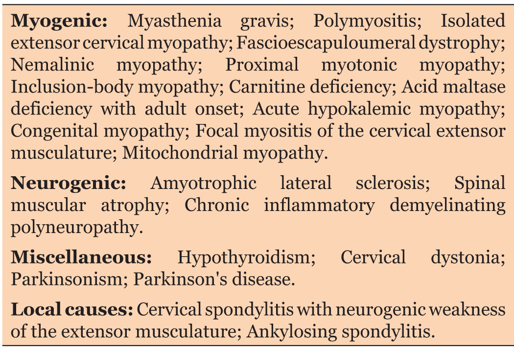 Gourie-Devi M, Nalini A, Sandhya S. Early or late appearance of “dropped head syndrome” in amyotrophic lateral sclerosis. J Neurol Neurosurg Psychiatry 2003;74(5):683–6. [CrossRef]