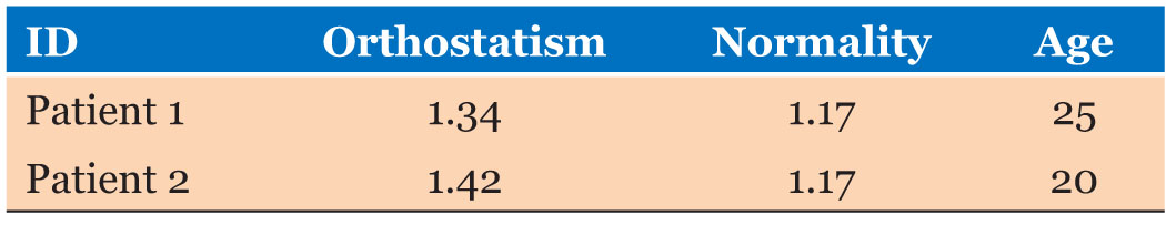 In the orthostatic and postural hypotension tests, the patients showed indices within the normal range [7].