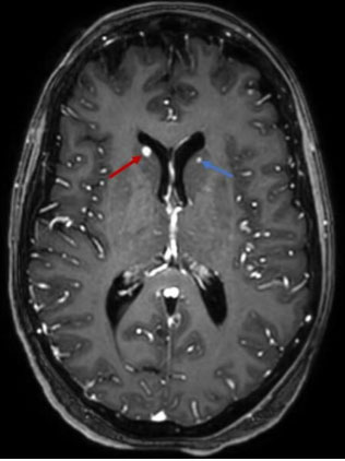 Primary high-grade glioma is a differential diagnosis to solitary metastases. No individual parameter can accurately distinguish the two, however, evaluation of peritumoral edema, if there is one, by spectroscopy, perfusion, and diffusion-weighted imaging (DWI), may help lead to the accurate diagnosis (e.g., an ADC in the peritumoral edema that is higher than 1.3×10–3mm2/s is more suggestive of a metastasis) [12].