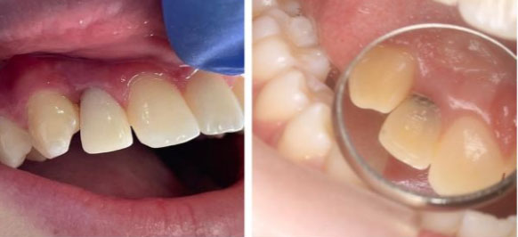 Clinically, this type of resorption shows a pink area in the cervical region and may present with bleeding on probing and associated cavitation [4]. In most cases, there is a percussion test and pulp sensitivity test compatible with pulp and periradicular health. Radiographically, incipient resorptions are not visualized, but in an extensive lesion, it is possible to notice an irregular radiolucent area with the non-involvement of the internal canal walls. The limitation of early diagnosis is that the patient is asymptomatic [4]. For treatment of early invasive cervical resorption with no pulp involvement endodontic treatment is not an option and follow-up is recommended. When a root canal infection is present, endodontic treatment is indicated, being associated with the sealing of the remaining dental defect with a bioceramic material [1],[2],[3],[4].