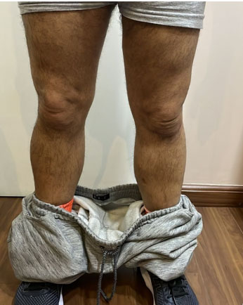 At first examination, the patient was stable, afebrile, acyanotic, anicteric, dehydrated, and vital signs in normal values. He currently weighed 50 kg and there were no respiratory or cardiac abnormal findings in physical examination. The abdomen was plan, with painful hardened hypogastric protrusion, well delimited in a circumferential form, without any sings of peritoneal irritation (Figure 1).