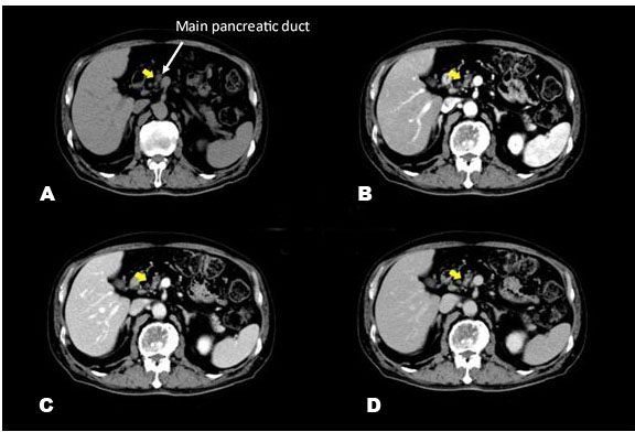 Ishigami K, Yoshimitsu K, Irie H, et al. Diagnostic value of the delayed phase image for iso-attenuating pancreatic carcinomas in the pancreatic parenchymal phase on multidetector computed tomography. Eur J Radiol 2009;69(1):139–46. [CrossRef]
