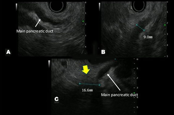 Case Report: We present a case of a man in his 70s whose diabetes had worsened, and the main pancreatic duct was dilated, with suspicion of pancreatic cancer. Contrast-enhanced computed tomography did not reveal a tumor that indicated possible pancreatic cancer, and endoscopic ultrasonography exhibited similar findings. Therefore, 3 Tesla-enhanced magnetic resonance imaging was performed to make an image diagnosis of pancreatic cancer.