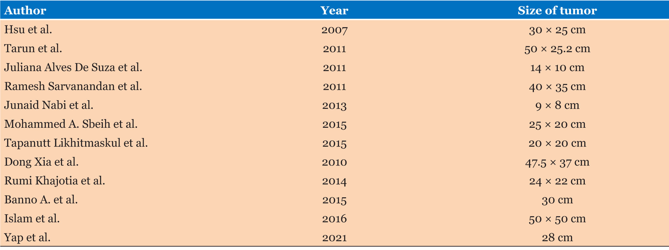 Kumar T, Patel MD, Bhargavan R, et al. Largest phyllodes tumor – Case report and brief review article. Indian J Surg Oncol 2011;2(2):141–4. [CrossRef]